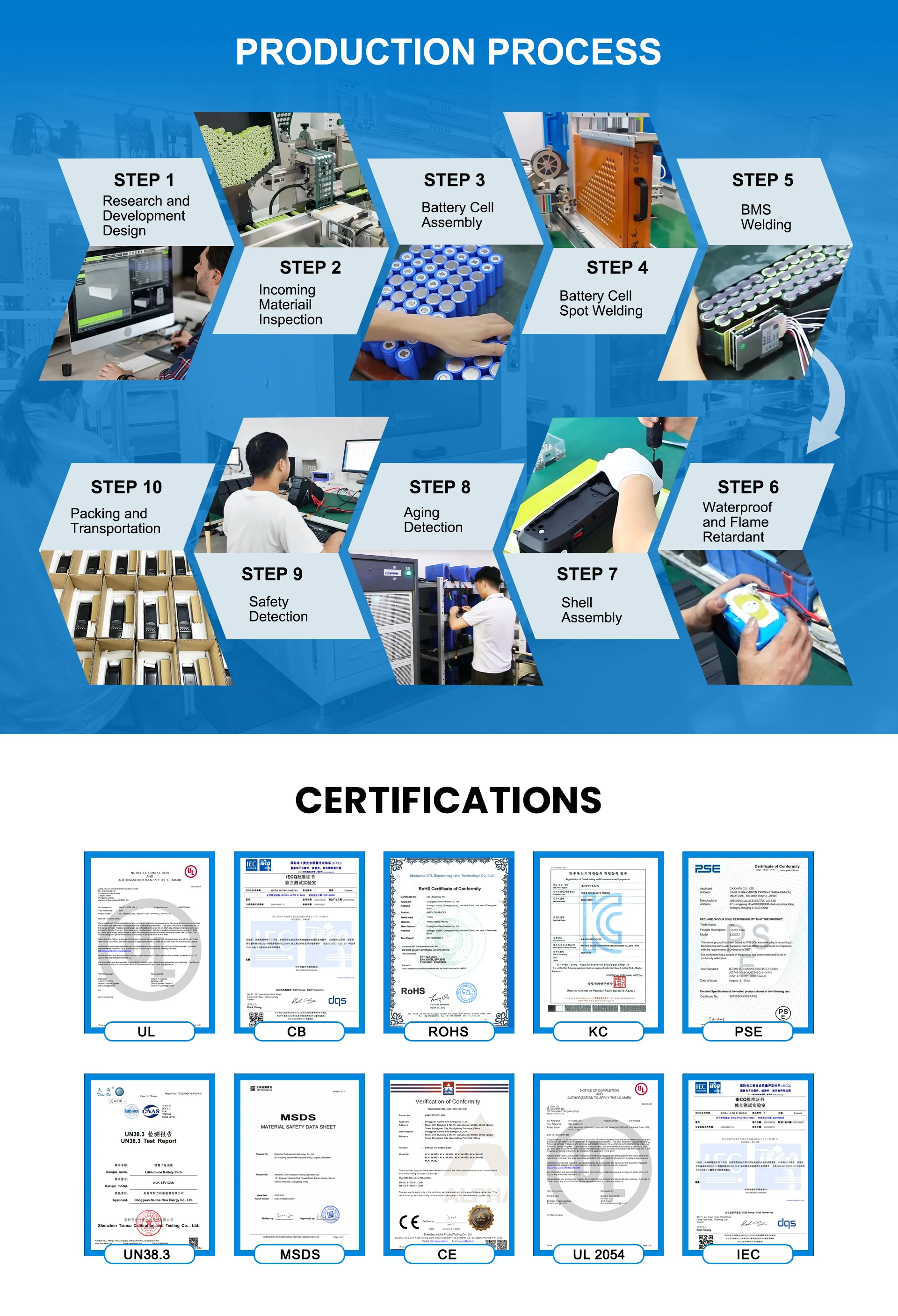 Professional battery manufacturer for e-bike with over a decade of experience in e-bike battery production. We offer OEM & ODM customization services for enterprises, provide factory-direct supply, and maintain comprehensive product certifications.